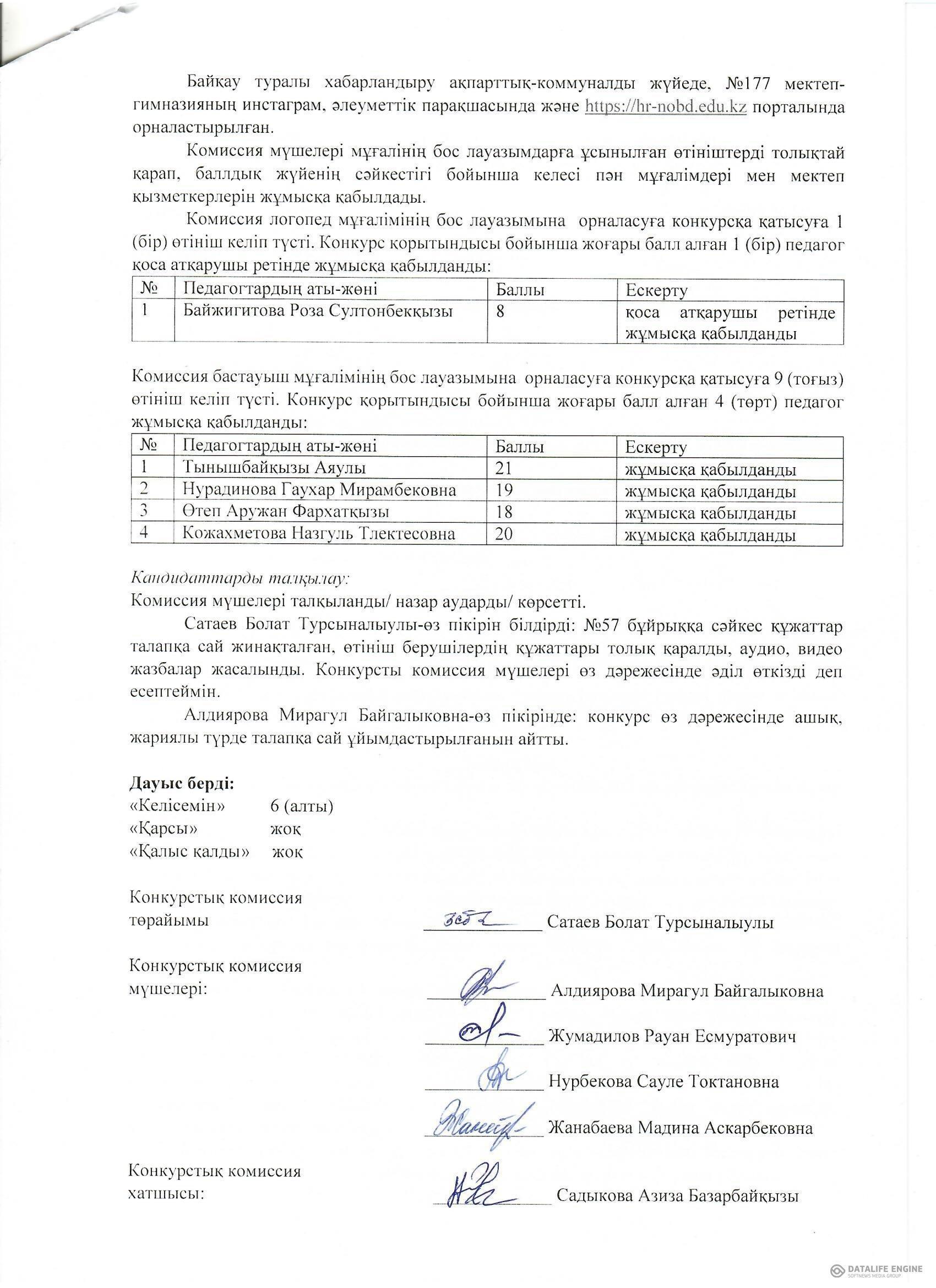 30 қаңтар 2025 0 1 2 3 4 5 Педагог қызметкерлерін лауазымға тағайындау конкурсының Хаттамасы №5 Осы беттің QR-коды:QR-код этой страницы: