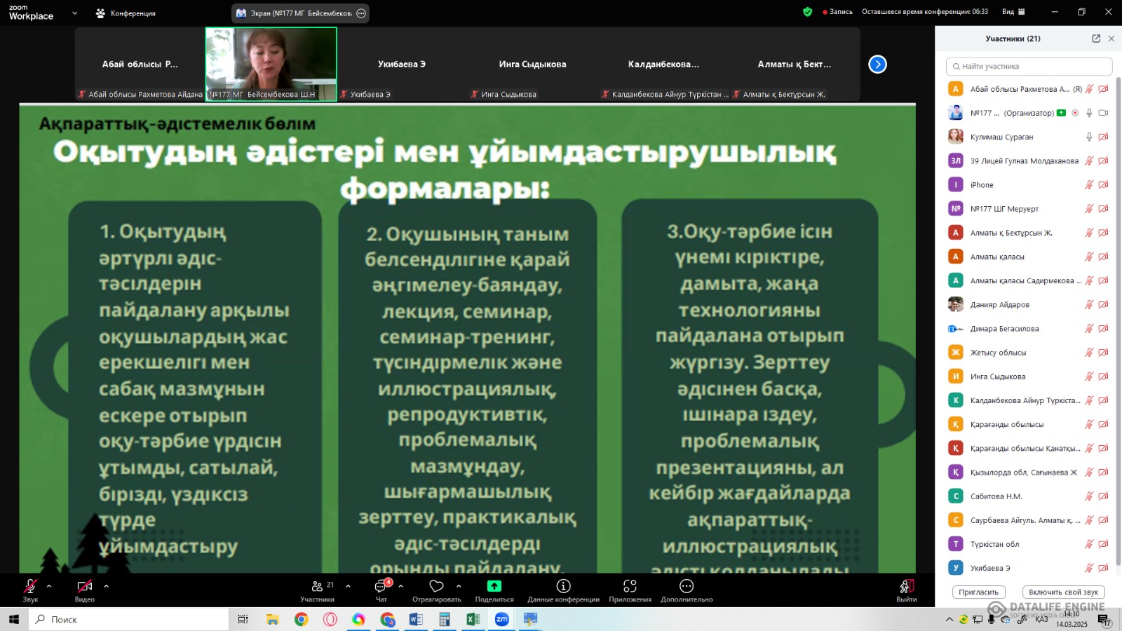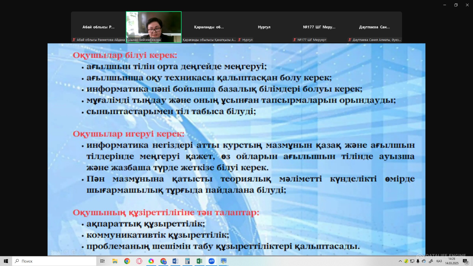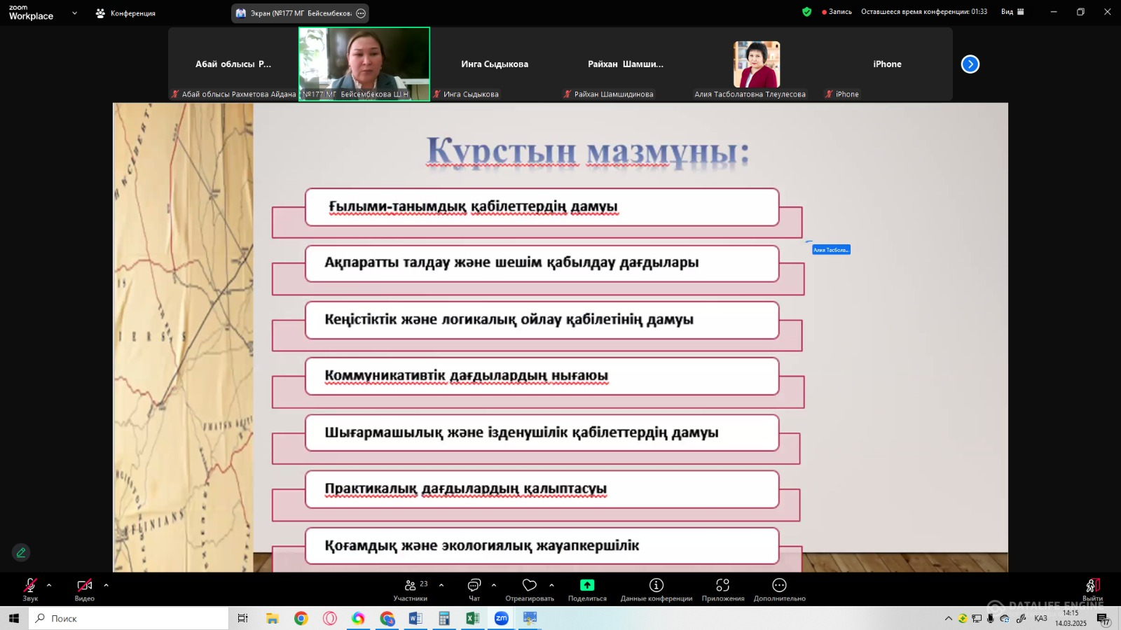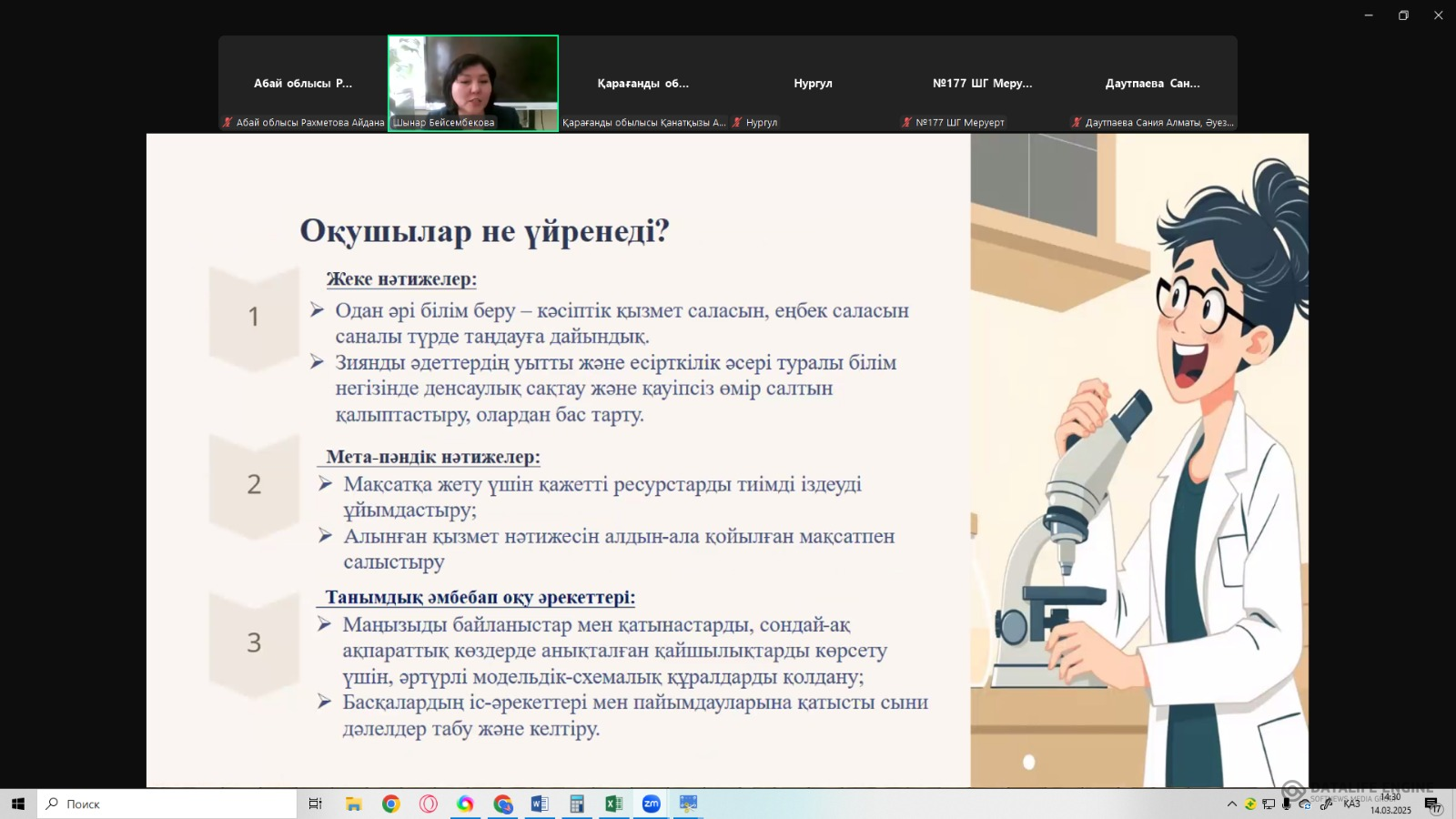 “Жаратылыстану және Қоғамдық-гуманитарлық бағытының тоғысуы ” тақырыбында өз авторлық бағдарламаларының тәжірибесімен бөлісті.