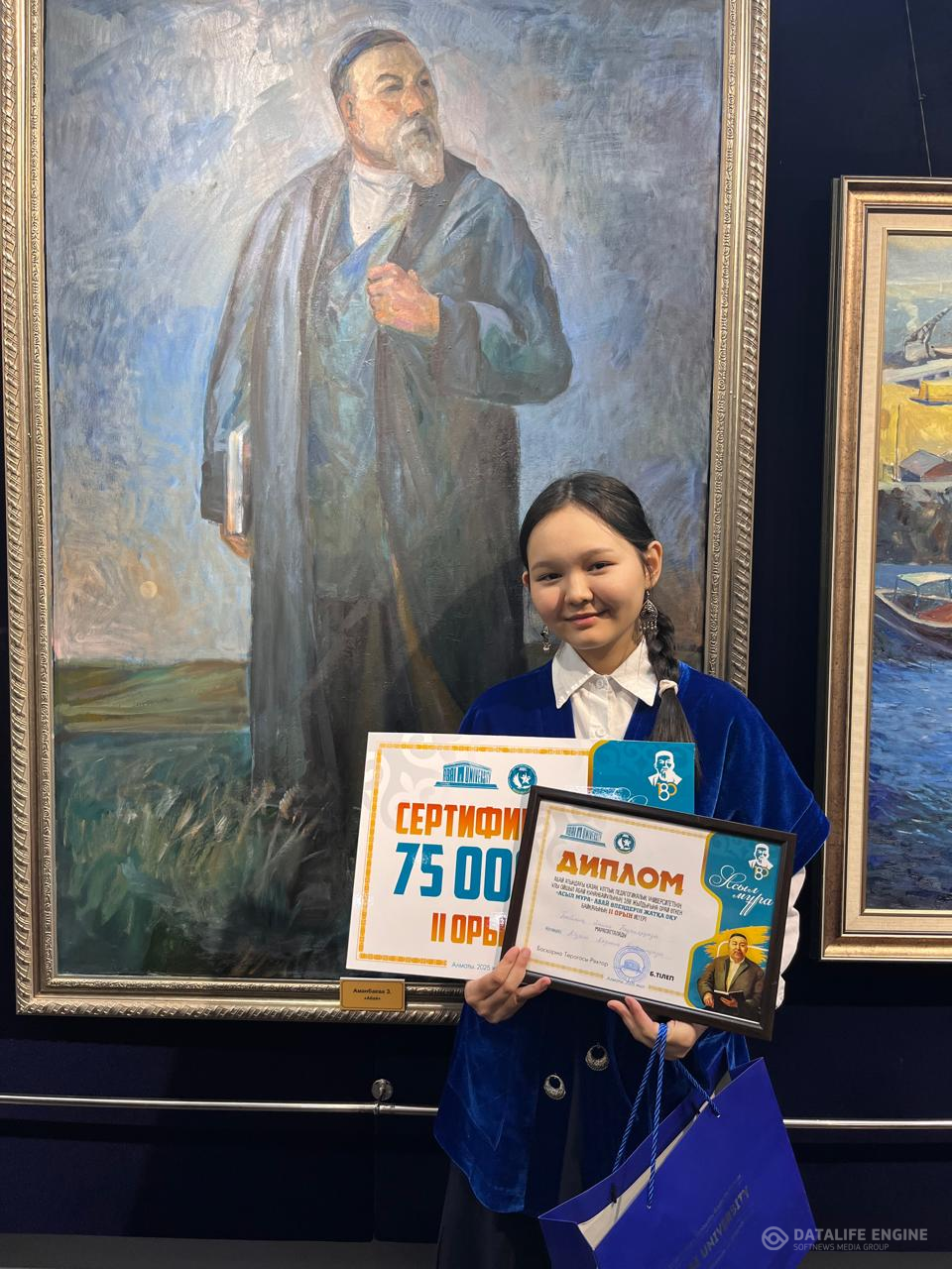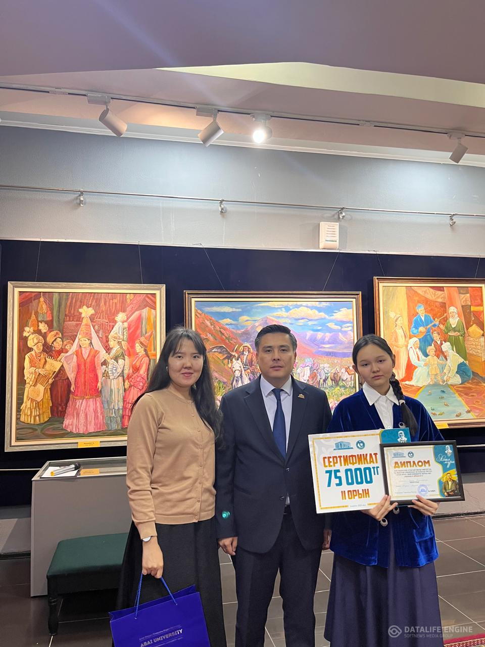 "Асыл мұра" атты ақынның 180 жылдығына орай Абай атындағы Қазақ Ұлттық Университет ұйымдастырған өлеңдерін жатқа айту бойынша байқаудың жүлделі ІІ орын иегері 10-сынып оқушысыБекболат Әмина, жетекшісі: Абдреш Аяулым
