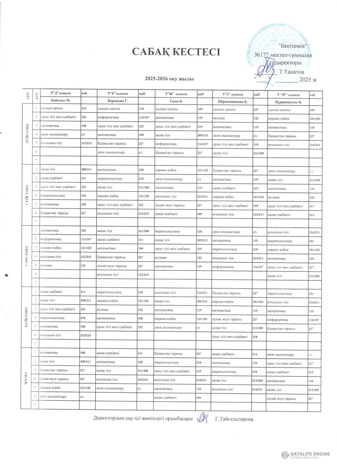 Педагог-психологтың қабылдау кестесі 2024-2025