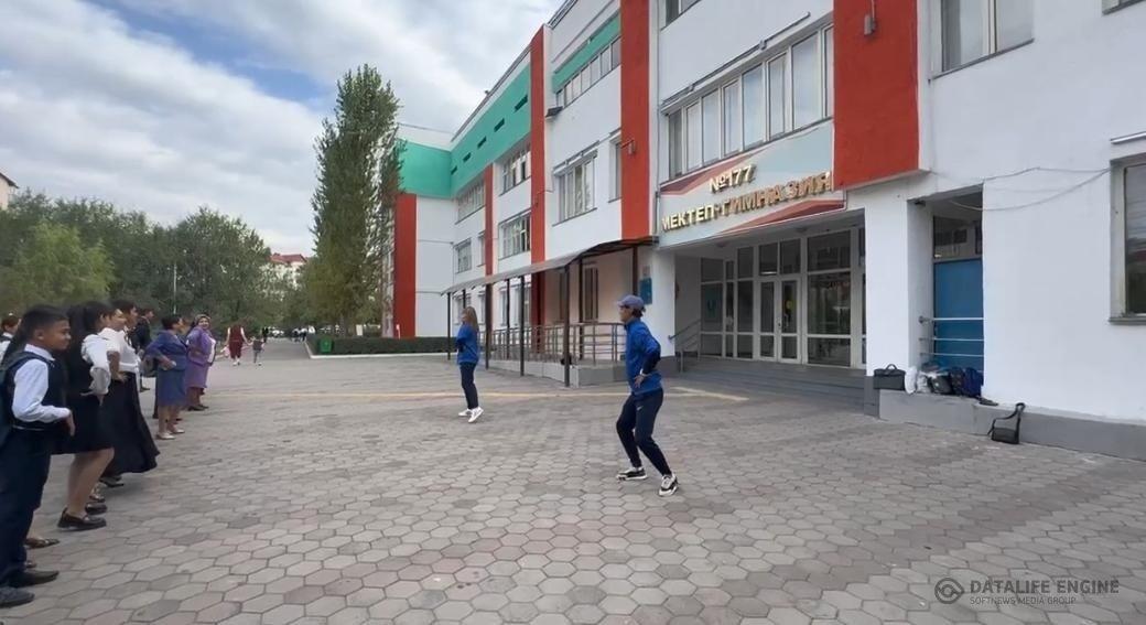 №177 мектеп-гимназиясында оқу күні дәстүрлі түрде әр сейсенбі таңғы бой жазу жаттығуымен басталды. Мұғалімдер мен оқушылар таза ауада сергіту жаттығуларын жасады.