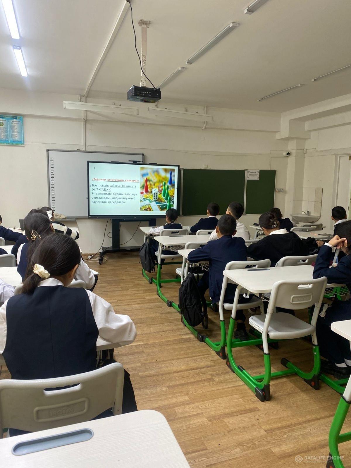 Бұл сабақтың мақсаты – оқушылардың өмірлік маңызды қауіпсіздік ережелері туралы білімін арттыру, төтенше жағдайларда дұрыс әрекет ету дағдыларын қалыптастыру. Сабақ барысында өрт, жол қозғалысы, тұрмыстық және интернет қауіпсіздігі тақырыптары талқыланып, көрнекі материалдар мен бейнероликтер арқылы түсіндірілді. Оқушылар түрлі жағдаяттық тапсырмаларды орындап, өз пікірлерін білдірді.