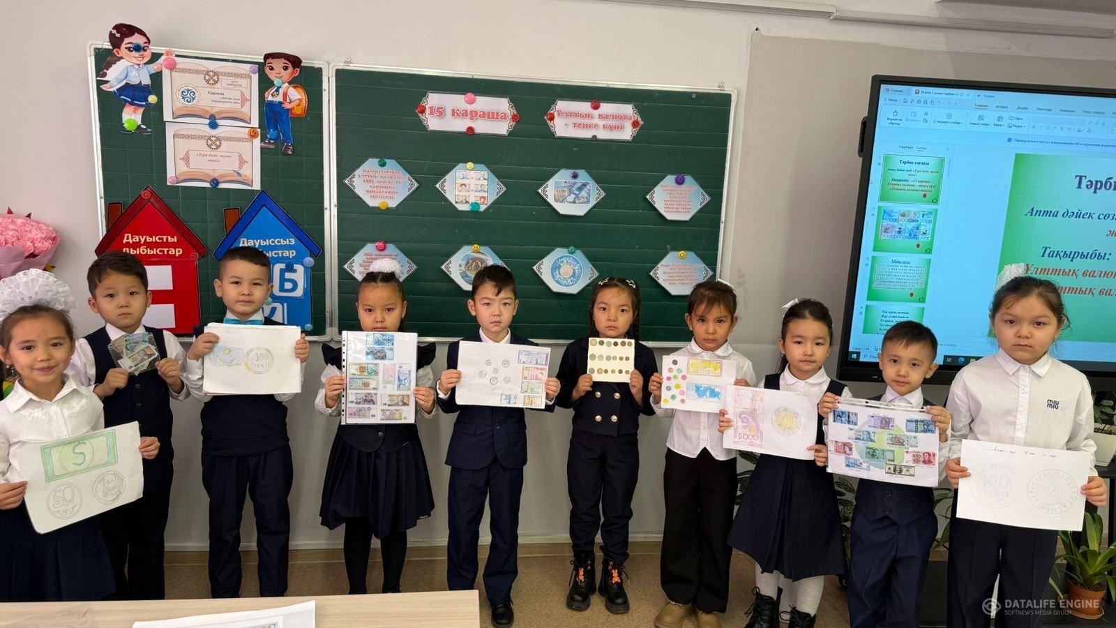 Төл валютамыздың туған күніне орай сынып сағатында 1”Б” сыныбы ескі банкноттар мен жаңа айналымдағы теңгелер,қосымша шет мемлекеттердің валюталарымен танысып,көп сұрақтардың жауабын алды.