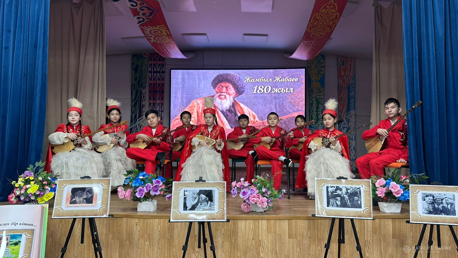 "Ғасыр ғұмырлы ғажап ақын" атты Жамбыл Жабаевтың 180 жылдығына орай іс-шара ұйымдастырылды. Ақынның өмірінен бала ақыннан Жамбыл ақынның өмірін қысқаша қойылымдық сюжетпен көрсетіп, сахналық қойылам жасады, өлеңдерінен үзінді оқылды. Ақынның шөбересі Бұлан Жамбыл қонақ болып келді. Жас ақындар мүшәйрасы болып , әділ-қазылар балалардың ақындығын бағалап, мектеп-гимназия директорының мақтау қағазымен марапаттады. Ұйымдастырушылар: қазақ тілі мен әдебиеті пәні мұғалімідері