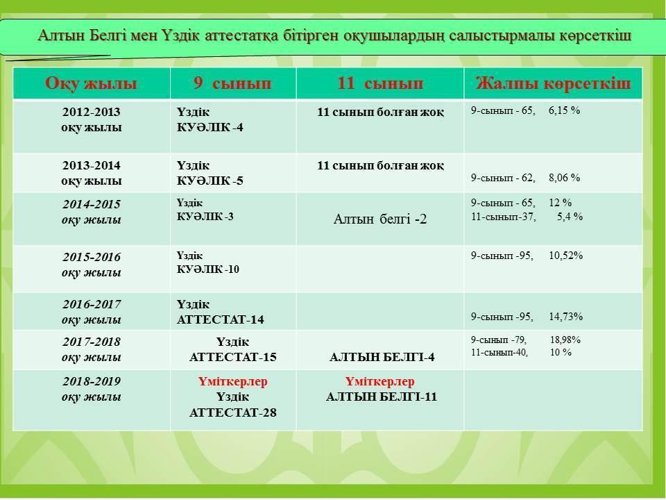 04 наурыз 2019 0 1 2 3 4 5 Алтын Белгі мен Үздік аттестатқа бітірген оқушылардың салыстырмалы көрсеткіші Осы беттің QR-коды:QR-код этой страницы: