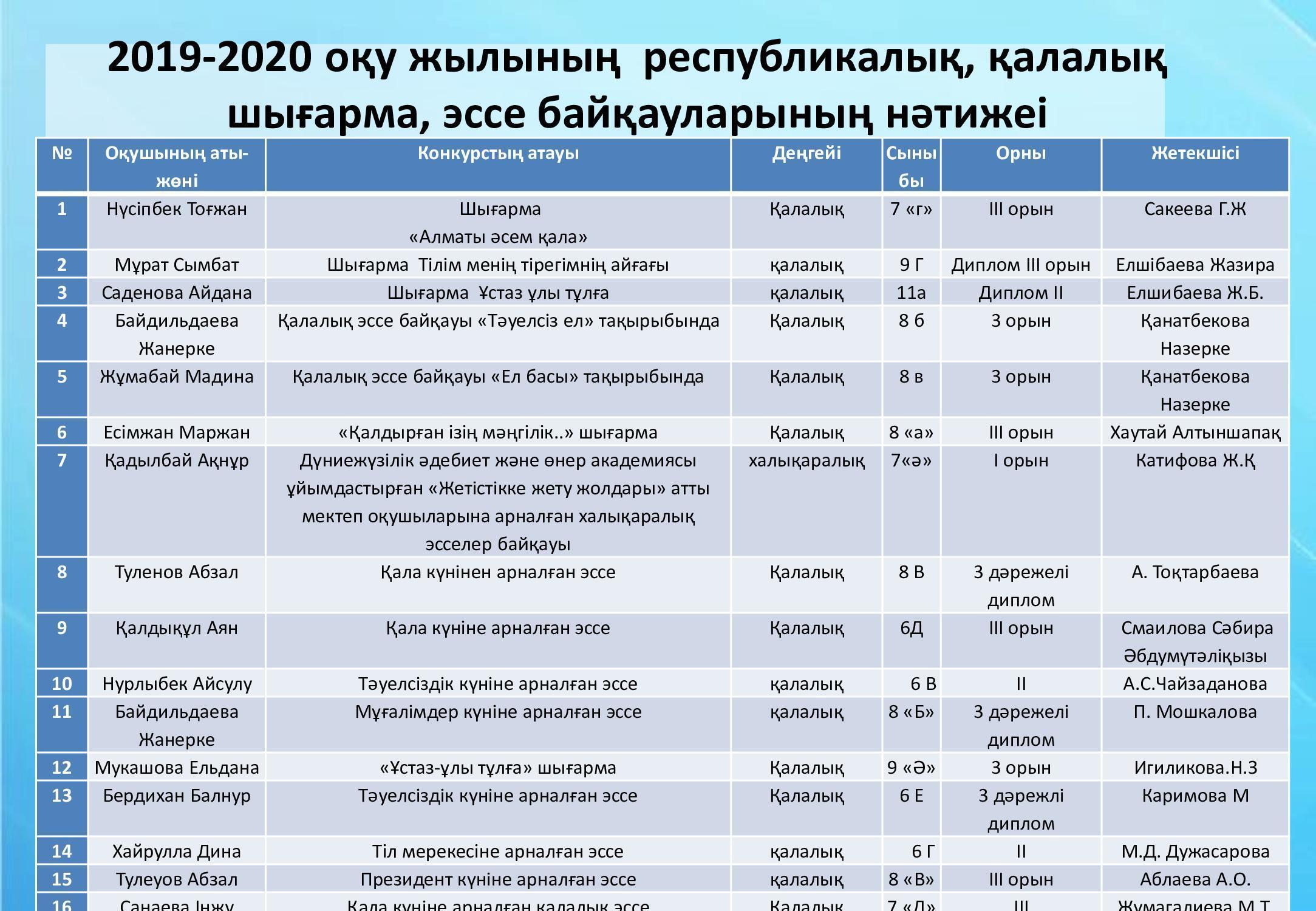 15 маусым 2020 0 1 2 3 4 5 2019-2020 оқу жылындағы мектептің жетістіктері Осы беттің QR-коды:QR-код этой страницы:
