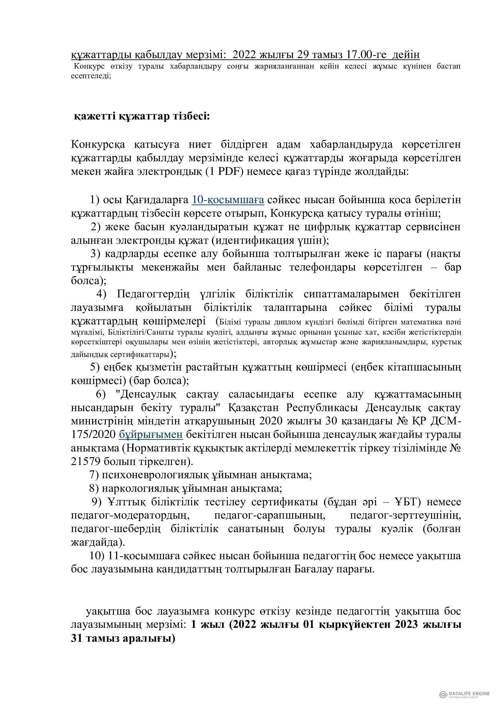 Конкурс туралы хабарландыру