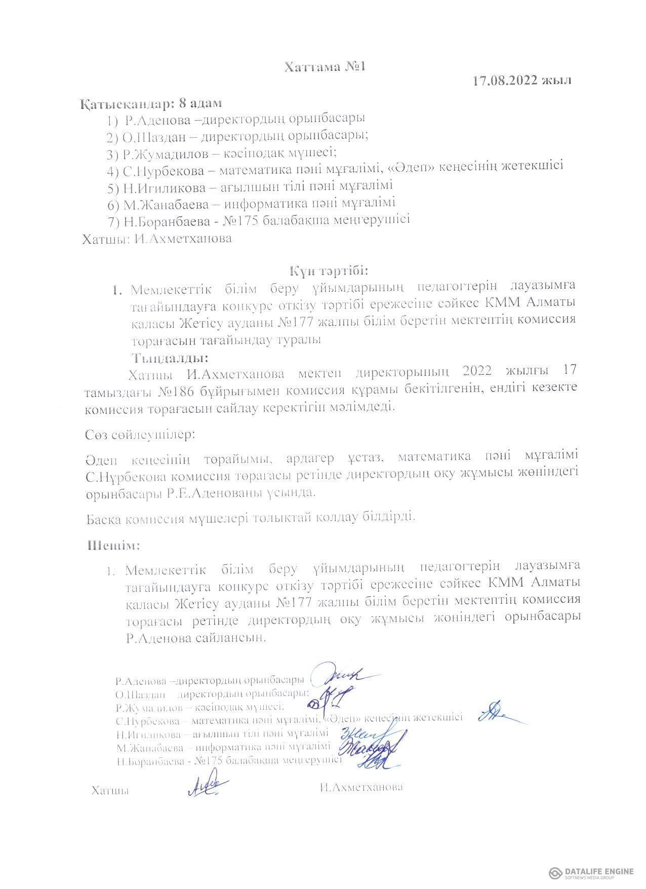 17 тамыз 2022 0 1 2 3 4 5 Хаттама №1 Педагогтерді лауазымға тағайындау конкурсының бекітілген комиссия құрамы Осы беттің QR-коды:QR-код этой страницы: