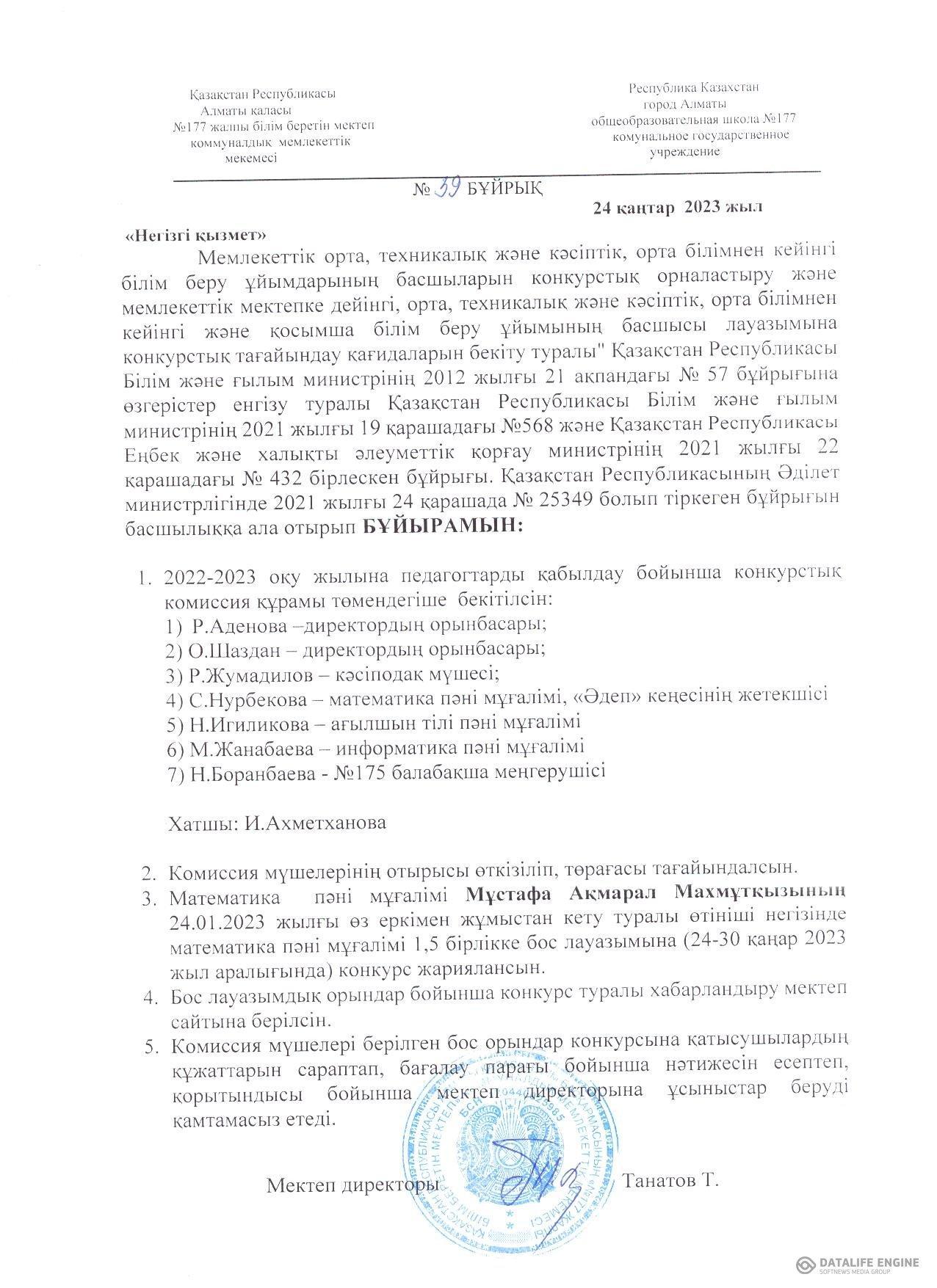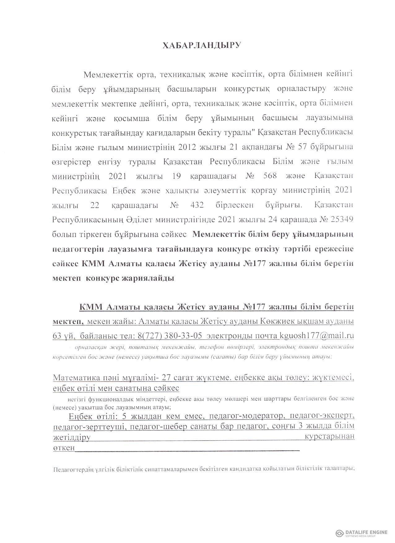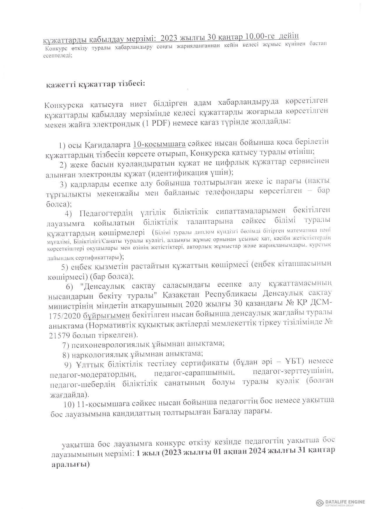 24 қаңтар 2023 0 1 2 3 4 5 Математика пәні мұғалімі 1,5 бірлікке бос лауазымына конкурс жарияланды Осы беттің QR-коды:QR-код этой страницы:
