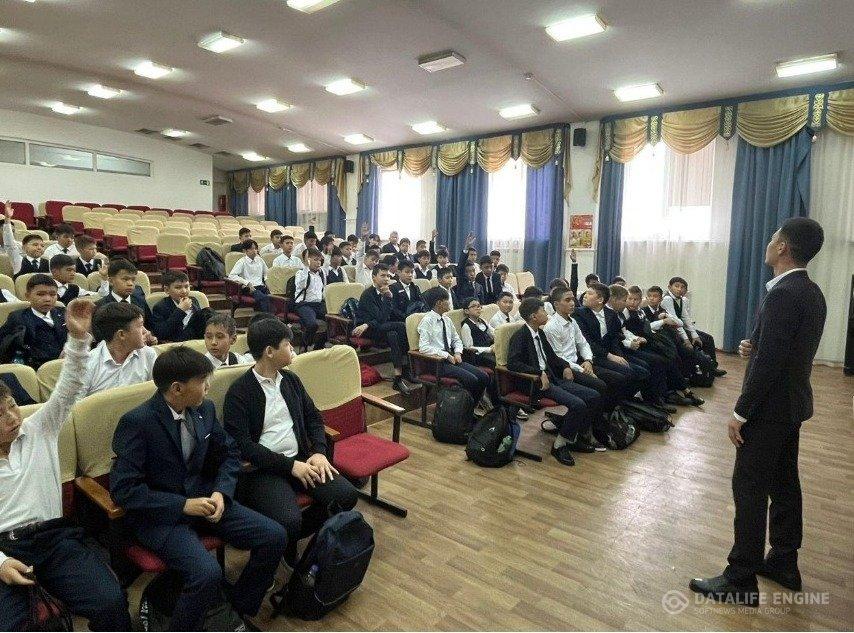 Ер балалар арасында зиянды әдеттердің алдын алу, спорттық іс-шараларға қатыстыру арқылы салауатты өмір сүру салтын насихаттау, өскелең жас ұрпақтың бойында патриоттық білім мен өзін-өзі жетілдіруге деген құштарлық, беріктік, Отан тарихына, Тәуелсіз Қазақстанның бүгіні мен болашағына деген жауапкершілікті қалыптастыру, отбасында да, қоғамдық ортадағы тәрбиеде де ер баланы еңбек етуге, еңбексіз бос отыра алмайтындай сезімге тәрбиелеу мақсатында: Директордың тәрбие ісі жөніндегі орынбасары Сәмбетбай Нұрдаулет мектептің ішкі ережелерін айтып, мектептің жалпы мүлкіне жауапкершілікпен қарауын сөз етті. Сонымен қатар оқушылар арасында әлімжеттік пен буллингтің алдын алу мақсатында анонимді түрде қызмет көрсететін QR код барлық кабинеттерге ілінгендігі жайлы мәлімет берілді. QR код арқылы білім алушы өз өтініші мен шағымын жасырын түрде жеткізе алады. Мектеп әкімшілігі түскен өтініштер мен шағымдар бойынша шаралар қолданады.