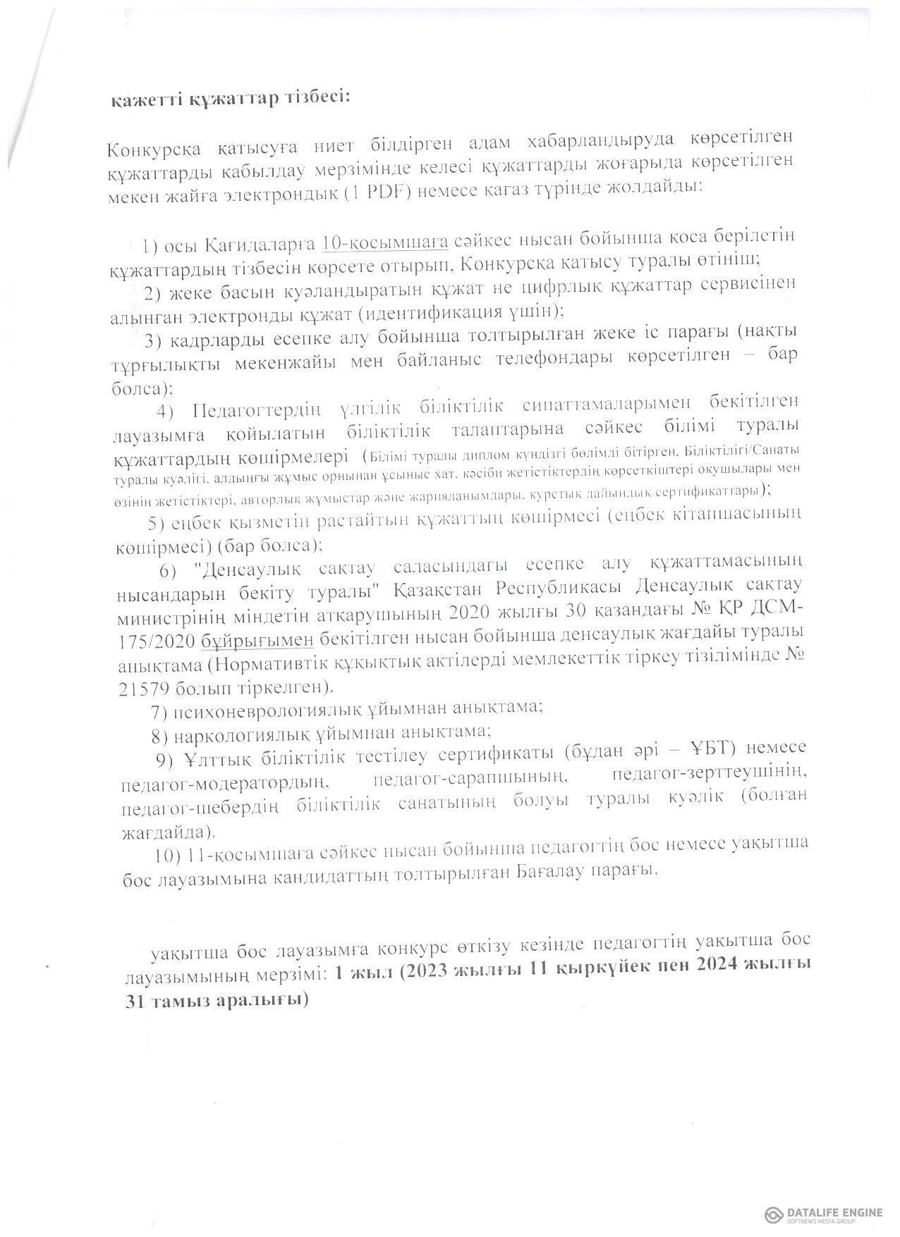 №186 бұйрық бос лауазымдық орындар бойынша конкурс туралы хабарландыру