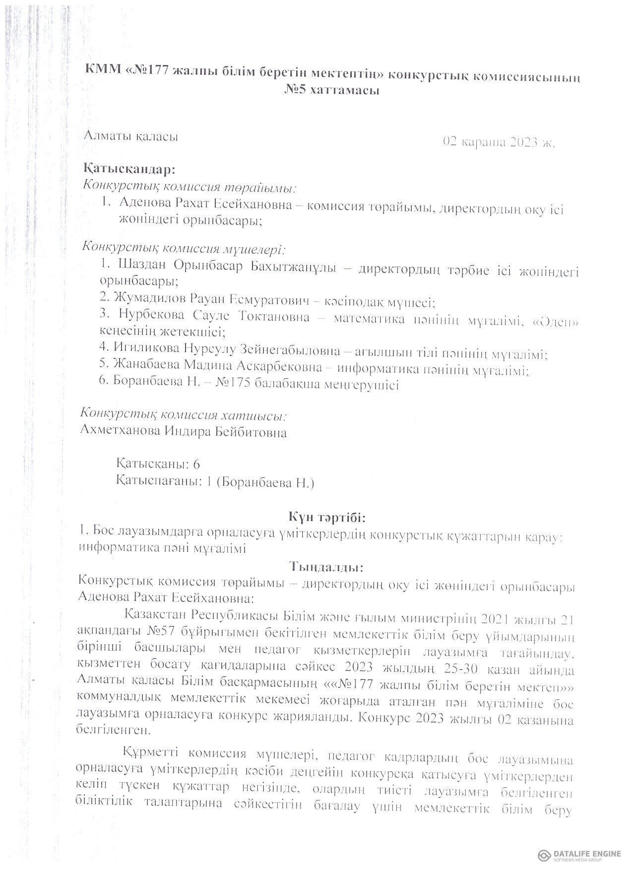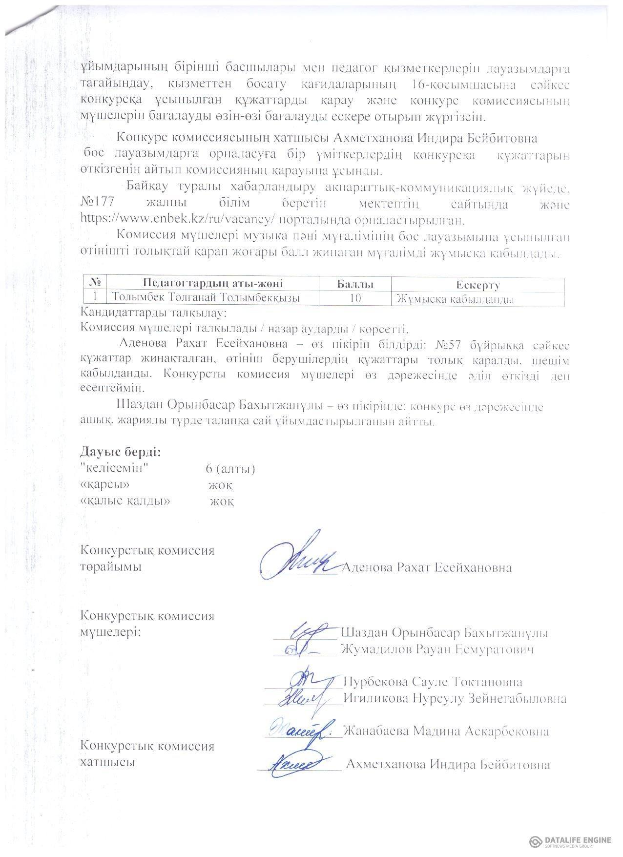 №2 Хаттама конкурстың нәтижесі