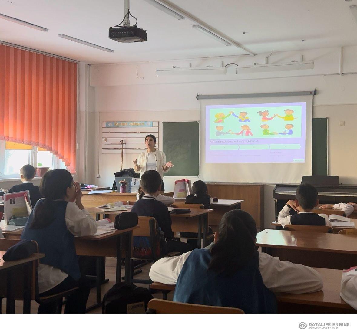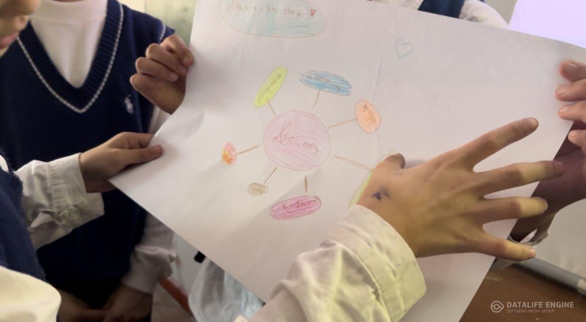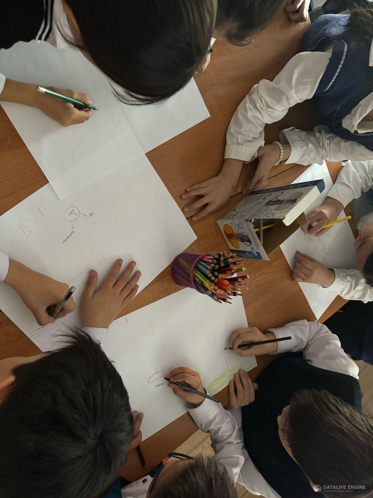 5 «Е» сынып оқушыларымен «Достық татулықтан басталады» тақырыбында тренинг өткізілді.Іс-шараның негізгі мақсаты оқушыларға достықтың адам өміріндегі рөлін түсіндіріп, оған дұрыс көзқарас қалыптастыру, топтық тапсырмалар арқылы әртүрлі адамдармен тіл табысу, бірге жұмыс істеу дағдыларын дамыту,бір-бірінің сезімдерін түсіну және оны құрметтеу.Осы тақырып аясында достық дегеніміз не,достықтың маңыздылығы,сенімді қарым-қатынас құру туралы ақпараттар берілді.Тренинг барысында балалар өз ойларымен бөлісіп, достары туралы айтып берді.Сонымен қоса топтық ынтымақтастықты арттыру мақсатында «атом және молекулалар»,«қар үйіндісі» жаттығулары және тренингті қорытындылау мақсатында оқушыларға осы тақырыпта сурет салу ұсынылды.Балалар өз арасында топшаларға бөлініп, достық тақырыбында суреттер мен ментальды карталар жасады.Тренинг соңында оқушылар өздерінің жылы лебіздерімен бөлісті.