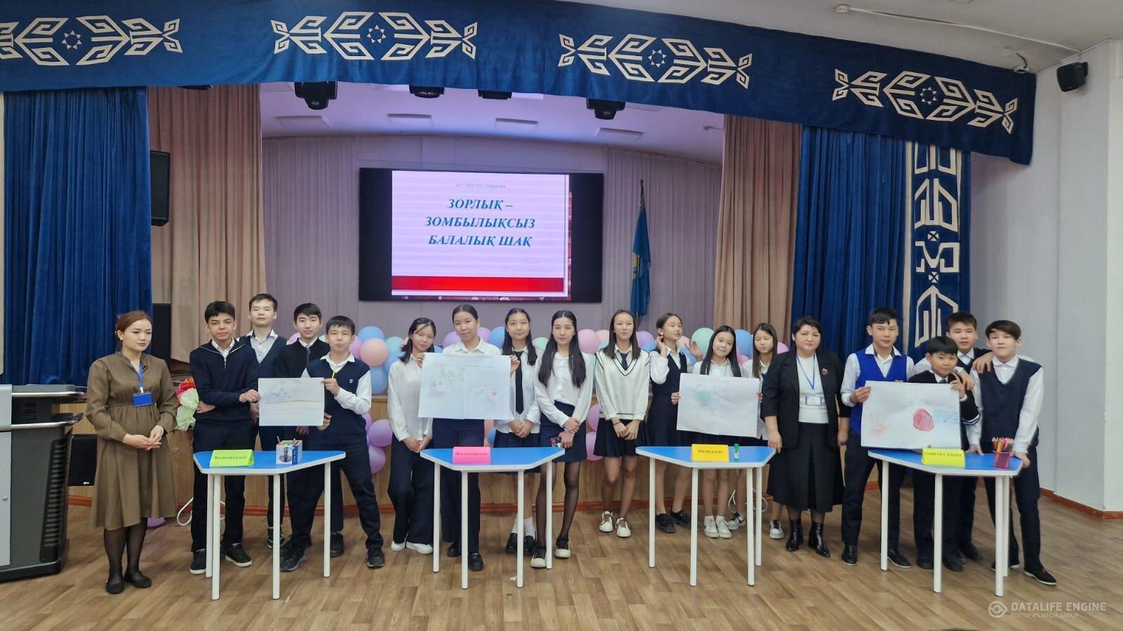 №177 мектеп-гимназиясында балаларға зорлық-зомбылықтың түрлері және оның психоэмоционалды жағдайына әсері туралы түсінік беру. Оқушыларға құқықтары мен міндеттерін таныстыру мақсатында 7-8-сынып оқушыларына «Зорлық-зомбылықсыз балалық шақ» тақырыбында ақпараттық дәріс берілді.