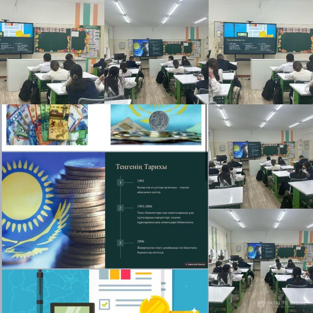Сабақ барысында оқушылар теңгенің шығу тарихымен, ұлттық валютаның маңыздылығымен және еліміздің экономикалық тәуелсіздігіндегі рөлімен танысты. 🇰🇿