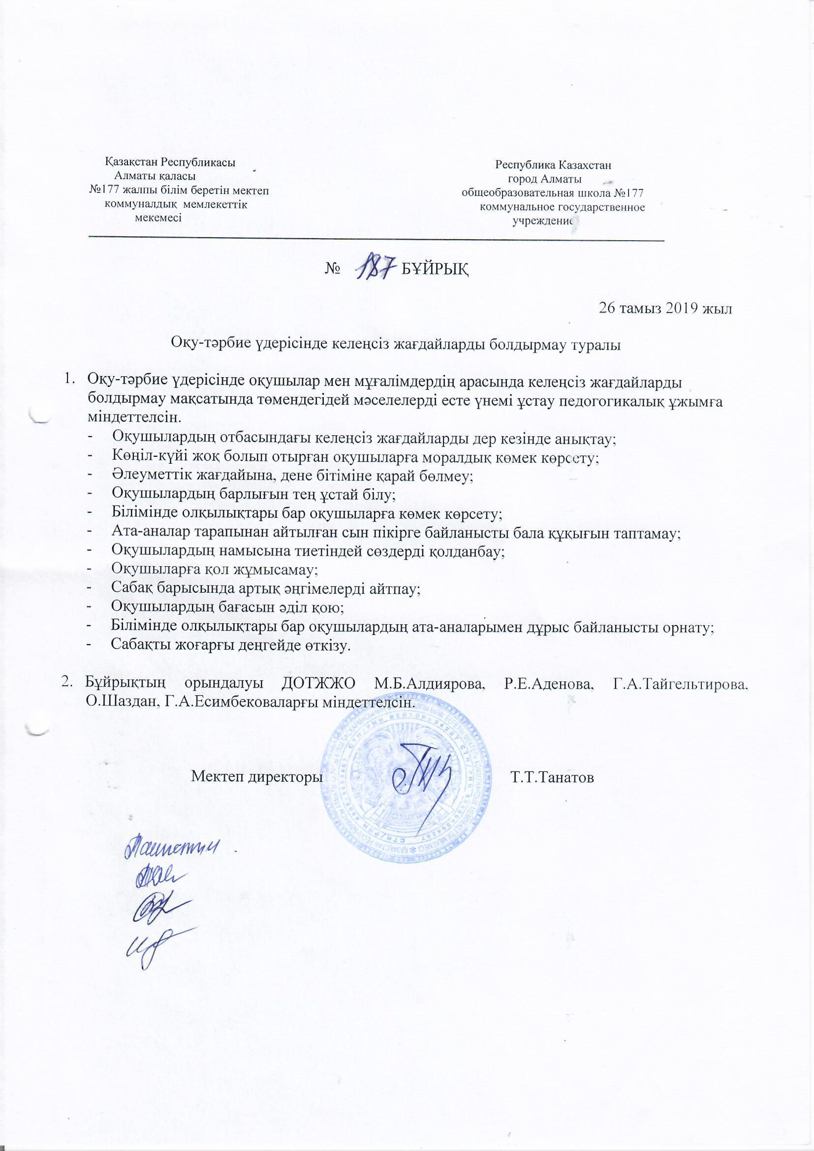 26 тамыз 2019 0 1 2 3 4 5 Оқу-тәрбие үдерісінде келеңсіз жағдайларды болдырмау туралы №187 бұйрық Осы беттің QR-коды:QR-код этой страницы: