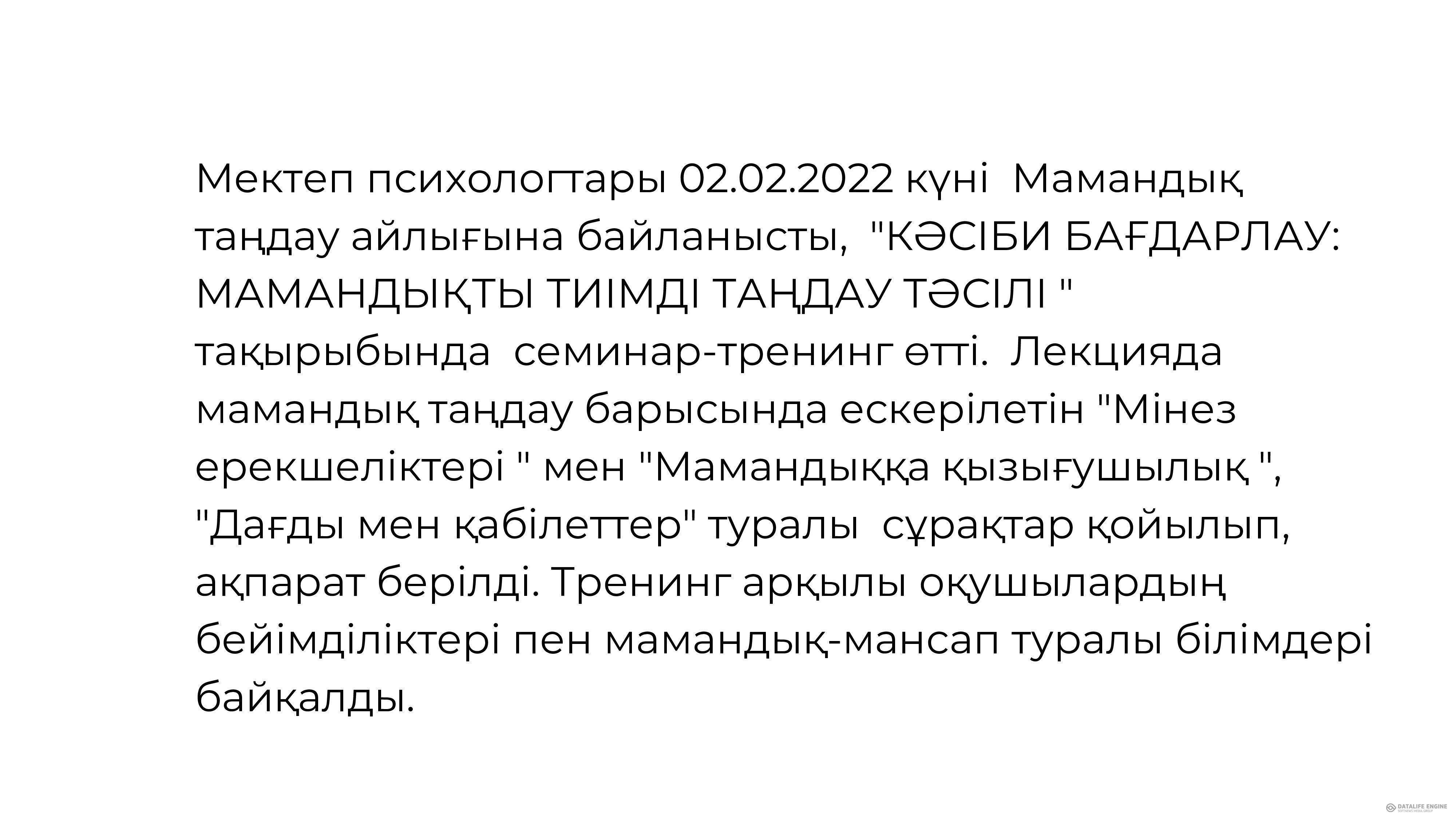 02 наурыз 2022 0 1 2 3 4 5 Мамандықты тиымды таңдау тәсілдері Осы беттің QR-коды:QR-код этой страницы: