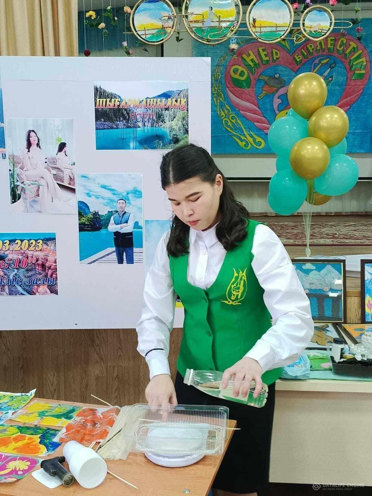 "Өнердің заманауи түрлері" атты тақырыбында көркем еңбек пәнінің мұғалімдері: Абдраманов Нұрқұлан мен Мейірбек Жазира, дене шынықтыру пәнінің мұғалімі: Шаздан Орынбасар және музыка пәнінің мұғалімі: Алтынбеков Абзал "Мектепке өзгеріс енгізу" тобының жұмысы бойынша Шығармашылық есеп берді.