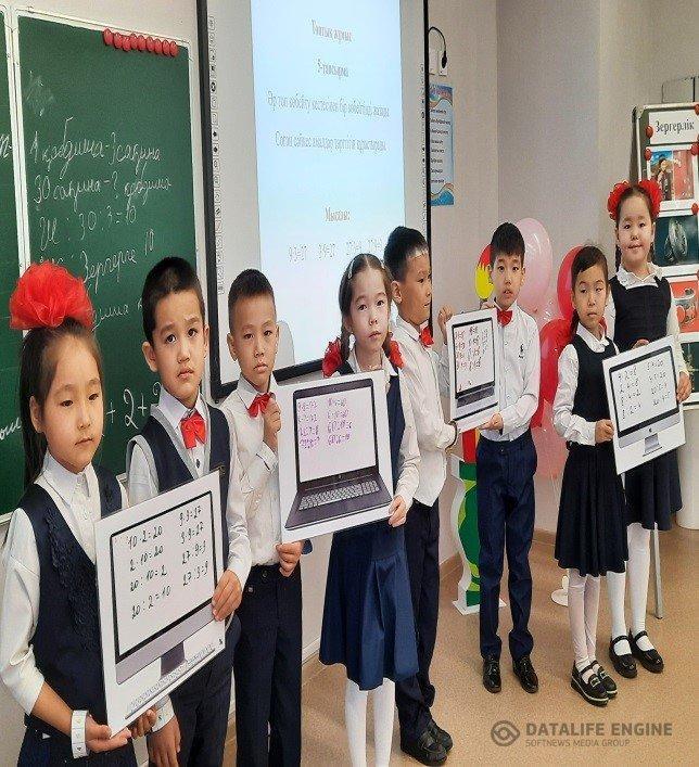 2 «А» сынып оқушыларымен Көрпебаева А.К математика пәнінен Көбейту мен бөлудің белгісіз компоненттерін табуға берілген есептер тақырыбында ашық сабақ өтті. Мақсаты: Көбейту мен бөлудің белгісіз компоненттерін табуға, кері есептерді құрастыру және шығару, тура және жанама сұрақтары болатын есептерді («бірнеше бірлік артық/кем», «бірнеше есе артық/ кем» қатынастарымен байланысты) бір-бірінен ажырату.Көбейту мен бөлуге берілген есептерге қатысты таңдаған амалдарын негіздеу, шығару әдісін түсіндіру.
