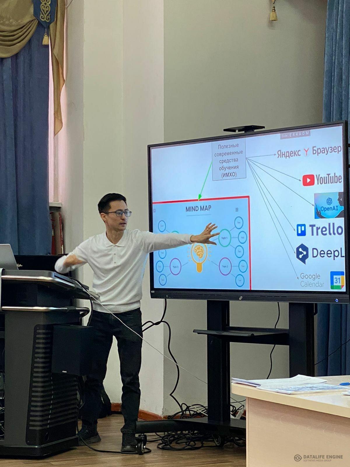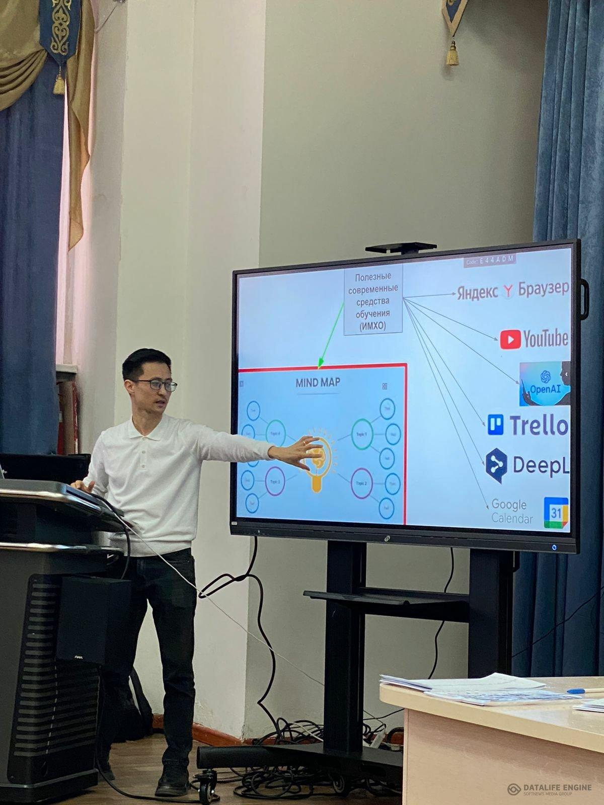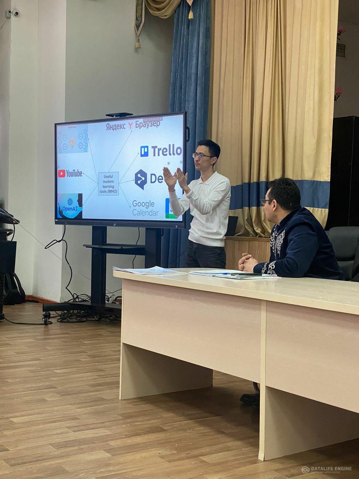 Қазіргі заманғы оқу құралдары:TRELLO, MIND MAP ,GOOGLE CALENDAR тиімділігі туралы «Bolashaq» ҚАУЫМДАСТЫҒЫНЫҢ мүшесі, ғылыми қызметкер Диас Тастанбеков ақпараттармен бөлісті. Қазіргі заман оқу құралдарына тоқталмас бұрын өзін таныстырып өтті. Әл-Фараби ҚазҰУ-дың жоғары медицина мектебінің аға оқытушысы , білім беру сапасын жақсарту және оқушылардың назарын аудару үшін заманауи IT-құралдарды қолдану тәжірибесімен және білімімен бөлісті. TRELLO, MIND MAP,YOU TUBE, DEEPLE, ЯНДЕКС БАРУЗЕР, GOOGLE CALENDAR құрылғыларының ерекшеліктері мен тиімділігіне тоқсталып, ұтымды тұстары талқыланып айтылды. Құрылымы, функциясы мен оқытудағы тиімділігіне тоқталып, түсіндіріп өтті.Соған сәйкес мақсат– бүгінгі білім беру үдерісінде заманауи оқыту технологияларын қолданудың практикалық жағдайларын анықтау болып табылатындығын айта келіп, оқытушылар оқу процесін ұйымдастыруға және құрылымдауға, оның тиімділігін арттыруға және оқытуды интерактивті және қызықты етуге көмектесетін жаңа онлайн платформалармен сабақтың қызықты болатындығын айтты.