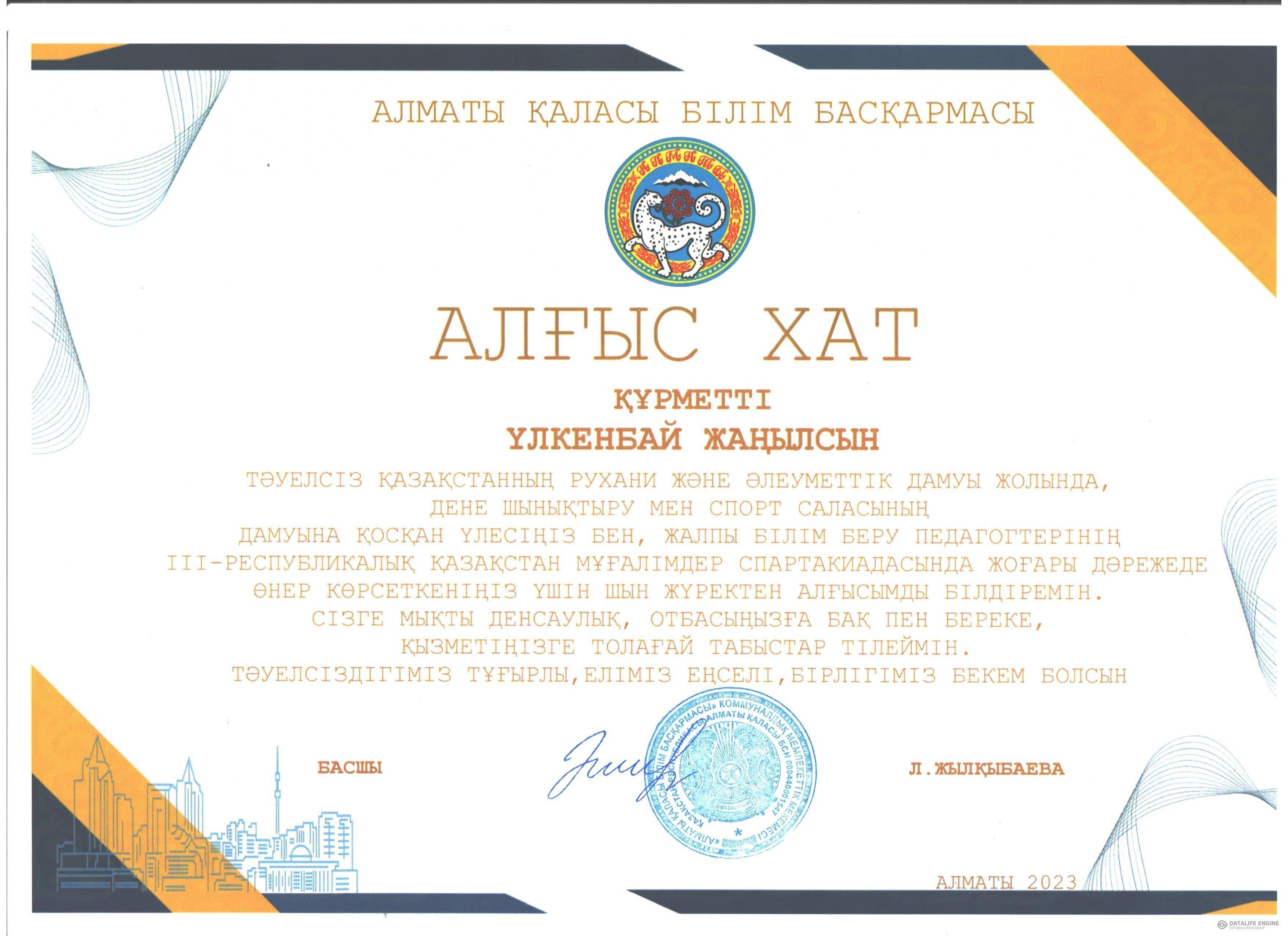 22 желтоқсан 2023 0 1 2 3 4 5 Алматы қаласы Білім Басқармасының Алғыс хатымен марапатталды Осы беттің QR-коды:QR-код этой страницы: