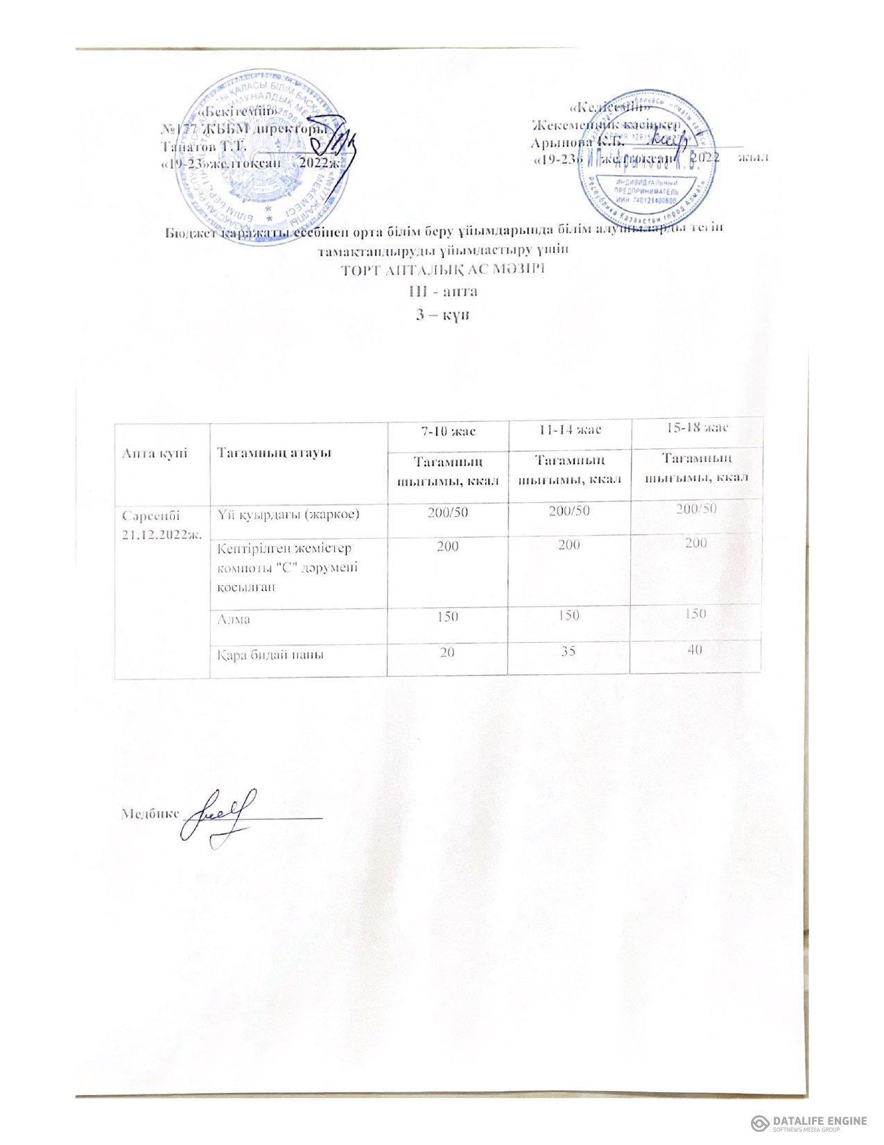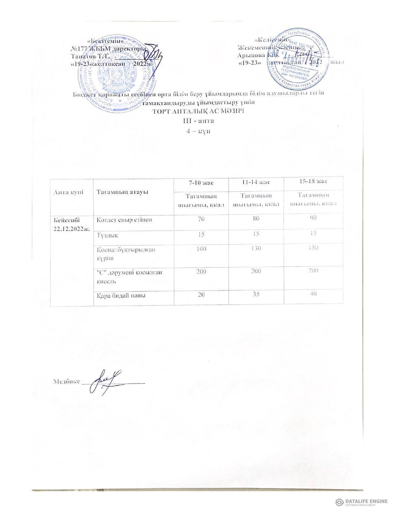 Меню 4 недельное блюд на 2022 год за счет родительских средств