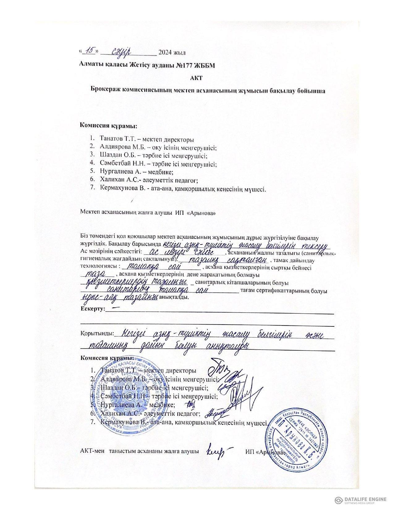 АКТ Брокираж комиссиясының мектеп асханасының жұмысын бақылау бойынша