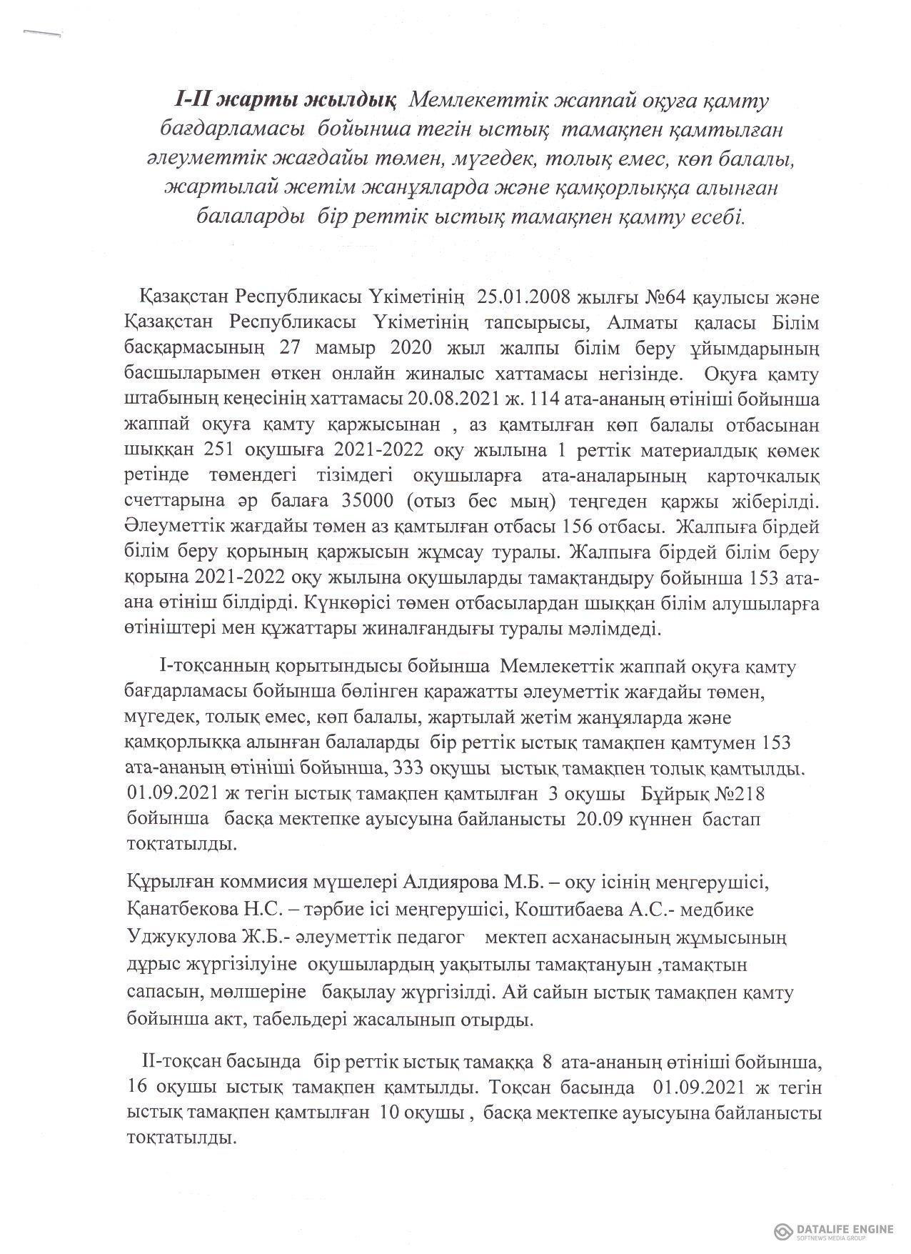 07 қаңтар 2022 0 1 2 3 4 5 І-ІІ жартыжылдықта балаларды бір реттік ыстық тамақпен қамту есебі Осы беттің QR-коды:QR-код этой страницы: