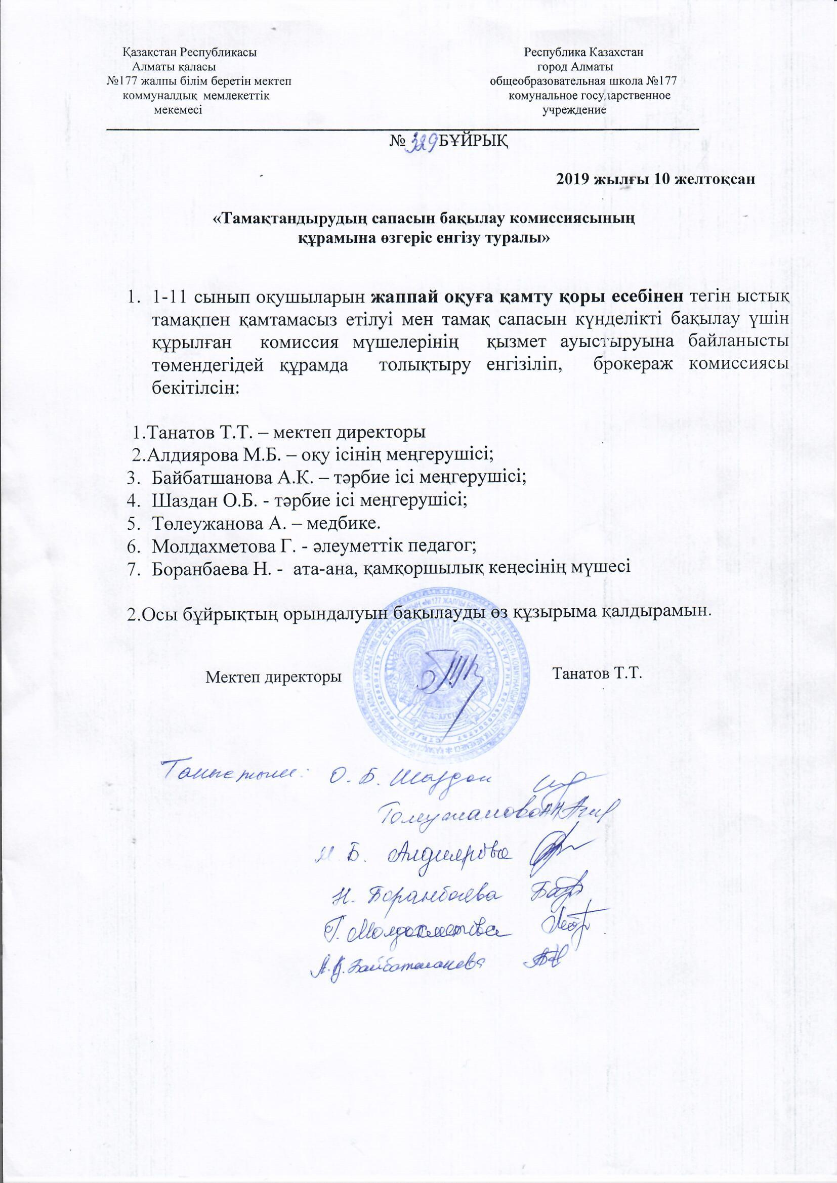 10 желтоқсан 2019 0 1 2 3 4 5 №329 Бұйрық Тамақтандырудың сапасын бақылау комиссиясының құрамына өзгеріс енгізу Осы беттің QR-коды:QR-код этой страницы: